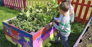 Kleine Gärtner ernten begeistert eigenes Gemüse – im Frühjahr warteten Kinder des Waldkindergartens Hardt und die Leiterin Frau Ocak sehnsüchtig auf die Ankunft von drei Hochbeeten. Die STIFTUNG MUCH hatte zugesagt, die Anschaffung zu finanzieren. Gemeinsam wurden sie aufgebaut, aber sie sahen zunächst noch etwas trist aus. Also haben alle, Kinder und Erzieherinnen, die Holzflächen bunt bemalt. Anschließend pflanzten die Kinder unter Anleitung Erdbeeren, Salatsorten, Tomaten und Vieles mehr.