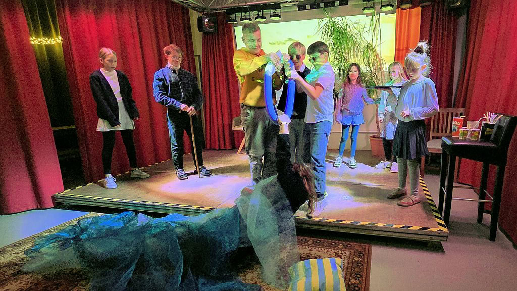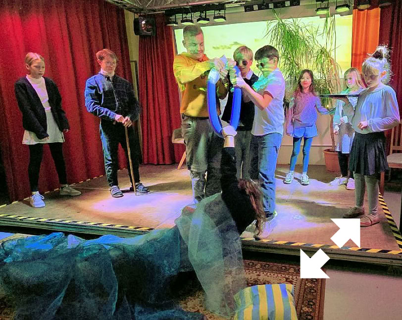 Mit ausdrucksstarkem Spiel, spürbarer Begeisterung für ihre Figuren erzählten die Kinder (8 – 15 Jahre) ihre Geschichte von Abenteuer, Zusammenhalt und Überraschungen. Der Applaus der Zuschauer belohnte sie.