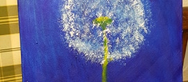 Der Malkurs begann Anfang August. Nach vier Veranstaltungen war erst einmal eine Pause angesagt. Weil die Teilnehmer so begeistert waren, folgte Ende September eine zweite Staffel. Henni‘s Pusteblume sieht schon fast professionell gut aus, da darf man gespannt sein, was aus noch aus dem Schmetterling wird.