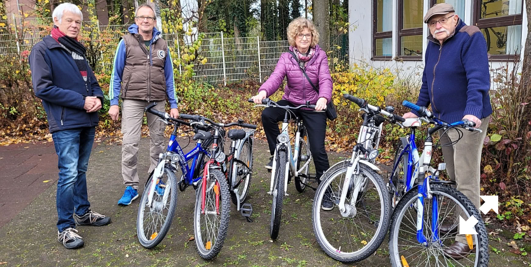 Weil das alles nicht ausreicht, stellt die STIFTUNG MUCH 1000 Euro zur Verfügung. Hiermit können unter anderem sorgfältig überholte Räder vom „Radhaus“ der Arbeiterwohlfahrt Siegburg beschafft werden. „Herr Rolffs, der Leiter des „Radhaus“, hat uns gerade fünf Räder gebracht,“ freut sich Herr Hohlwein. Bevor diese Fahrräder abgegeben werden, versieht er jedes Rad mit einer eingravierten Nummer. Nur gegen ein Pfand und Vermerk des Namens werden die Räder ausgegeben.